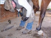 As you can see from the pictures, Acapulco is going to need diligent foot care and corrective shoeing. Because of potential complications related to the crack, we can't turn him out at home, so he has to stay on board at the barn where I go every day to work with him. To affect as great a recovery as possible, he will need acupuncture and prescription medications from the vet, nutritional supplements for feet and joints that are expensive, regular chiropractic care, and consistent farriery care.
